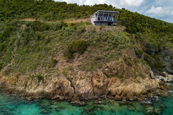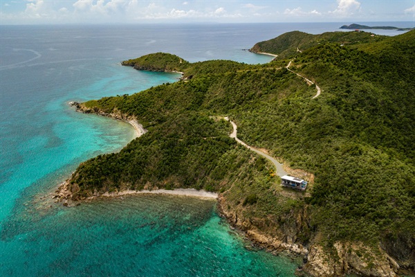 At the edge of St. John’s East End, the island’s last house sits high over the water— neighbor-free, worry-free, just a private path to a secret beach and snorkeling right below your villa.