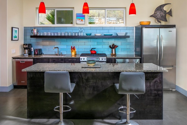Total privacy and miles from the nearest neighbor, the clothing-optional setting feels like a private island. Sited above a dramatic rocky shoreline, you’ll be lulled to sleep by the sound of the waves and wake up to endless Caribbean horizons. Eco Haute is sustainably designed and furnished in mid-century modern style, blending refined comfort with effortless simplicity - everything you need for a vacation unplugged.